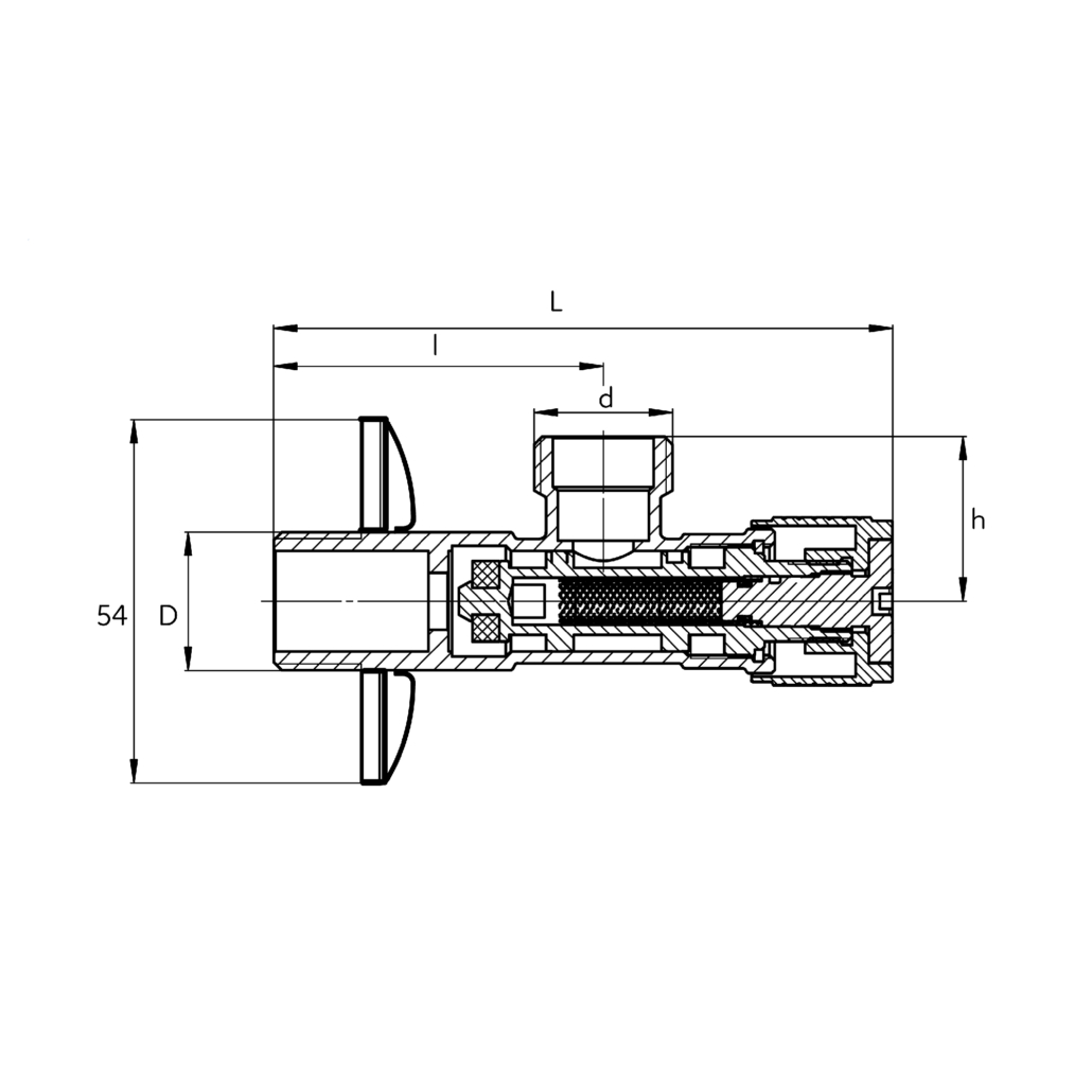 • kątowa budowa zaworu umożliwia podłączenie urządzeń w ograniczonej przestrzeni